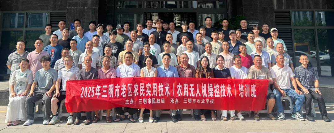 8月10日至16日,由三明市民政局主办、三明农校承办的2025年全市老区农民实用技术(农用无人机操控技术)培训班在沙县区圆满举办。来自各县(市、区)部分革命老区村的种植大户、新型经营主体骨干以及低收入农户共65人参加此次培训并顺利结业,成为老区村一批持证上岗的高素质植保无人机“飞手”。