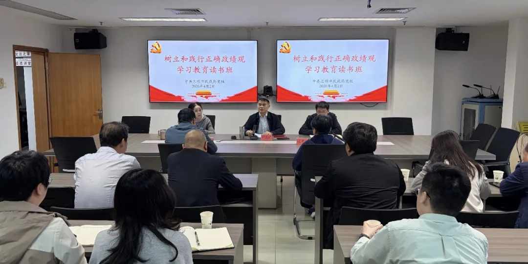 4月2日至3日,市民政局举办树立和践行正确政绩观学习教育读书班,深入学习贯彻习近平总书记关于树立和践行正确政绩观的重要论述,紧扣民政工作政治属性,引导全系统党员干部校准政绩坐标、端正干事导向,以过硬作风推动新时代三明民政工作高质量发展。局党组书记、局长邓秀广主持开班式并讲话。