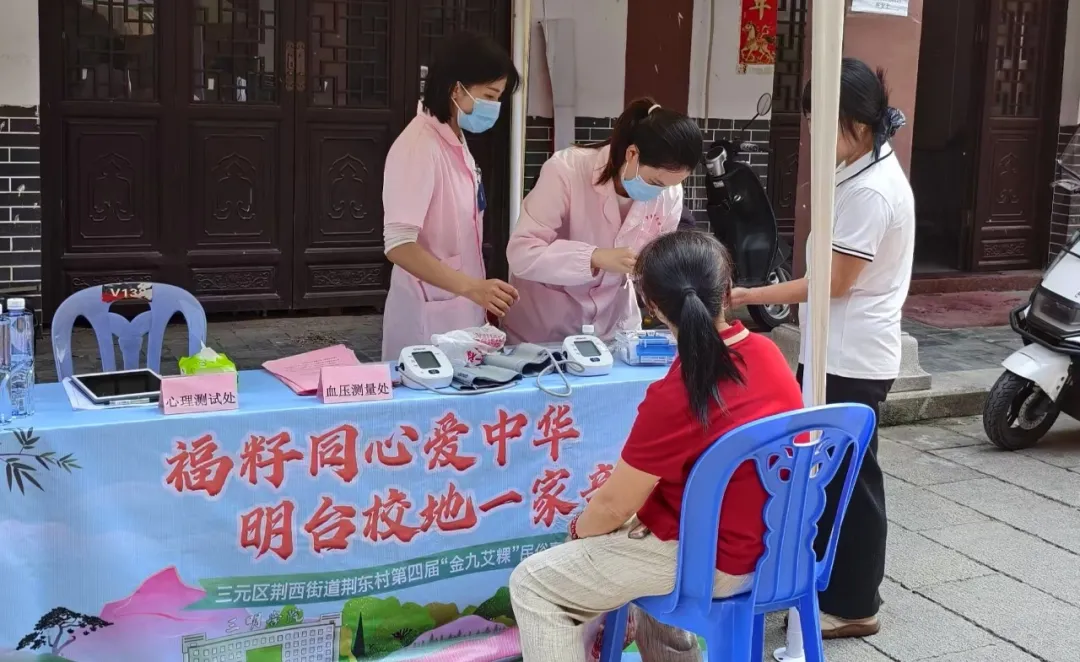 4月11日,在荆东村欢庆一年一度的艾粿节之际,市康复疗养院组织专业医疗团队开展以“关注身心健康,共建和谐乡村”为主题的健康志愿服务活动,将优质医疗资源下沉基层,为300余名村民送上暖心关怀。