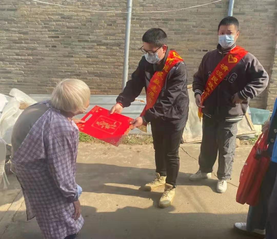 为了响应防控疫情不聚集的号召,我们决定取消现场写春联的活动,采用上门送春联的形式来给老人送去新春的祝福,同时帮助行动不便的老人贴春联,迎接新春的到来。在给老人送春联的过程中,也给他们送去口罩,向他们宣传防疫知识,让他们注意防护,保护自己。